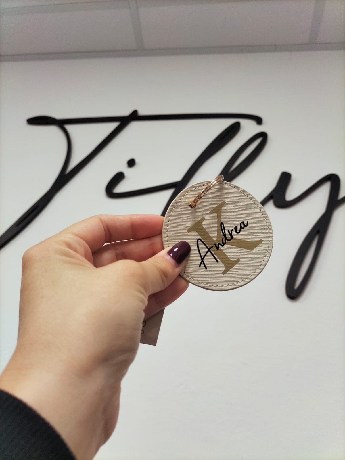 Aggiungi un tocco di eleganza e positività alle tue giornate con il Portachiavi Vanity.