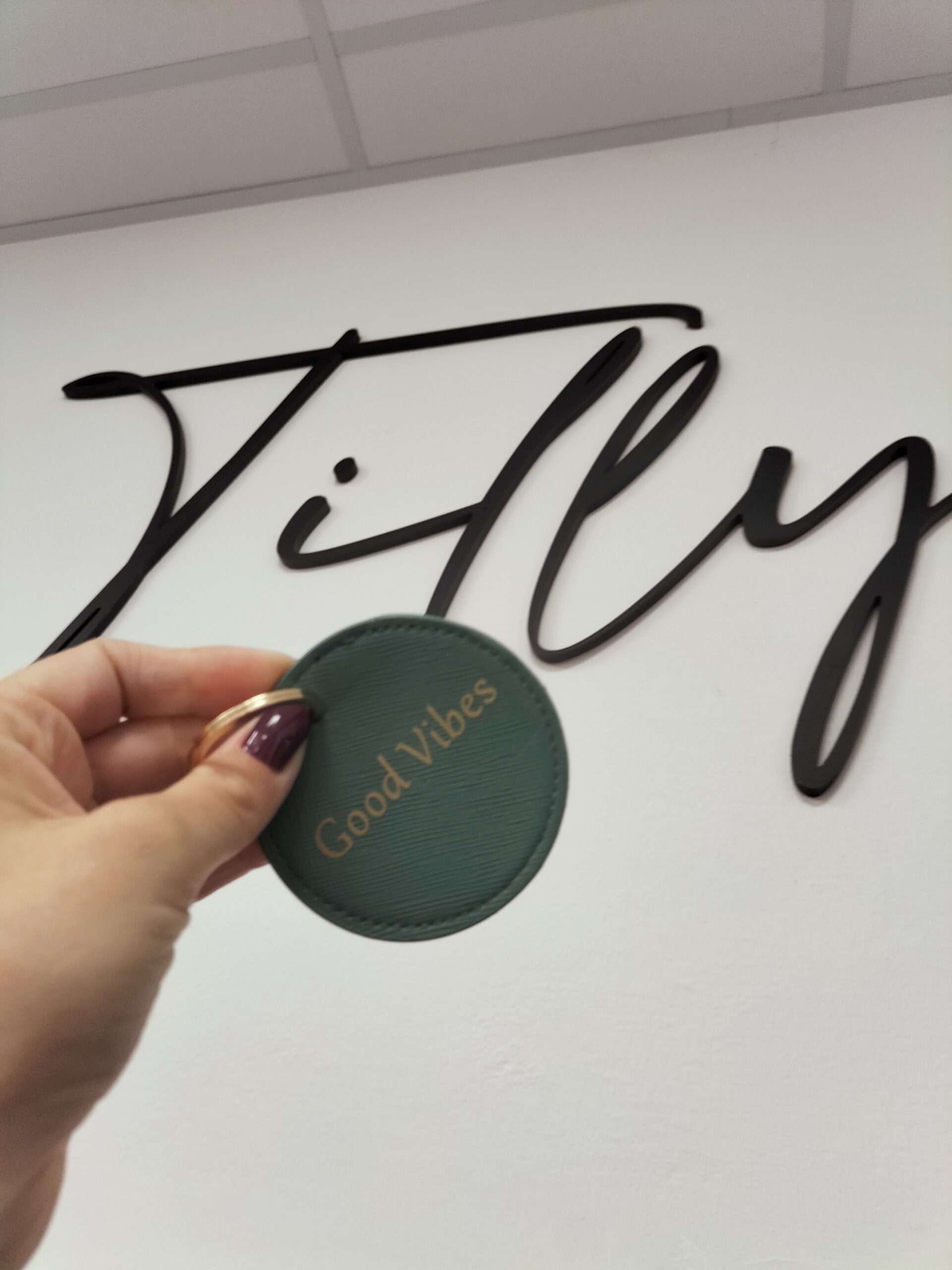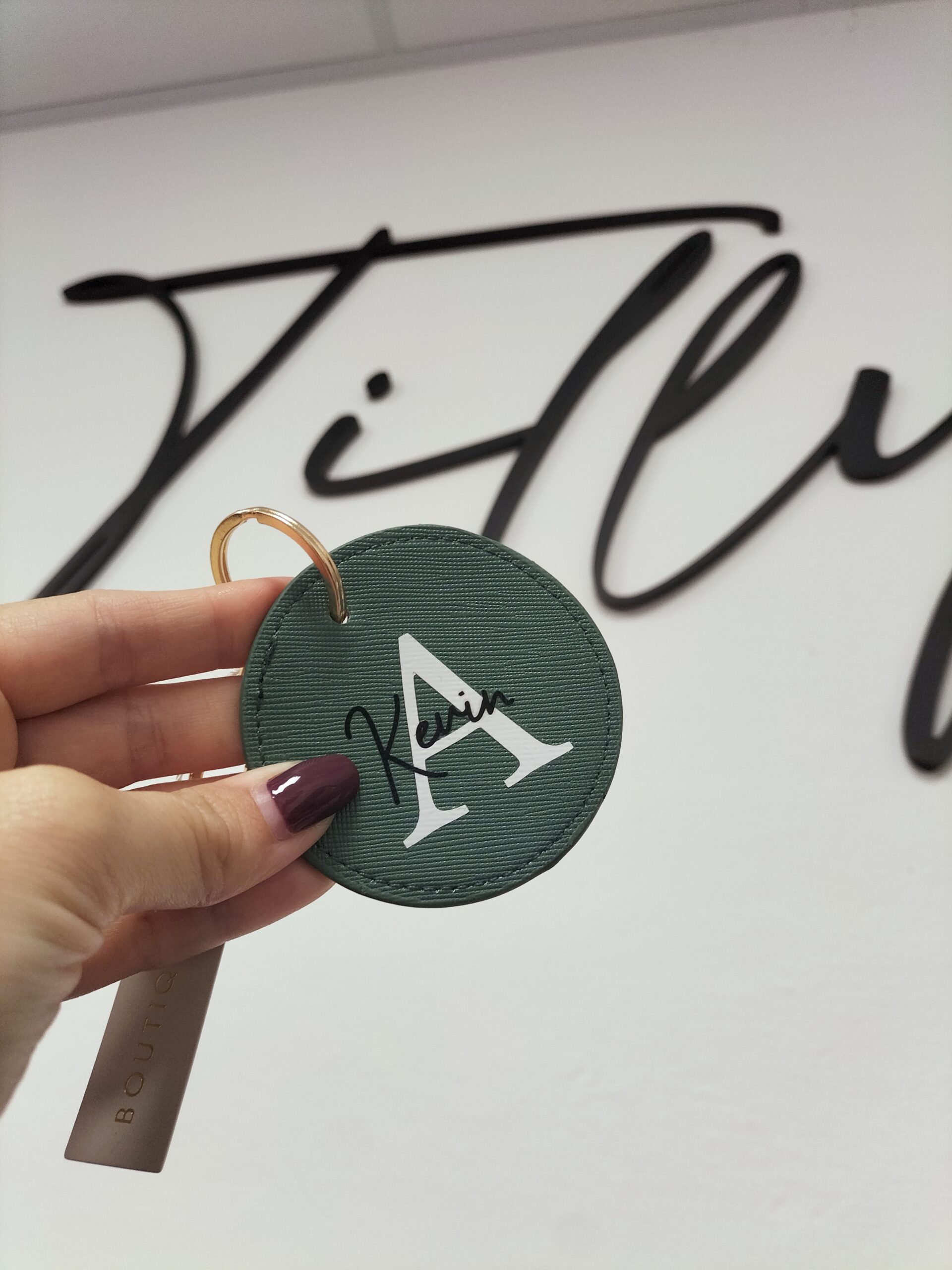 Aggiungi un tocco di eleganza e positività alle tue giornate con il Portachiavi Vanity.